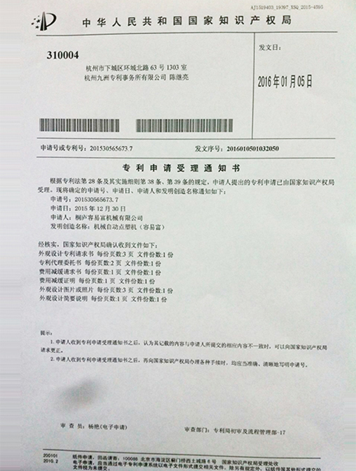 已經(jīng)獲得十多項(xiàng)發(fā)明專利和二十多項(xiàng)實(shí)用新型和外觀專利,所有產(chǎn)品都是經(jīng)過高精密的設(shè)計(jì)和制造,以確保機(jī)器可以平穩(wěn)的運(yùn)行。